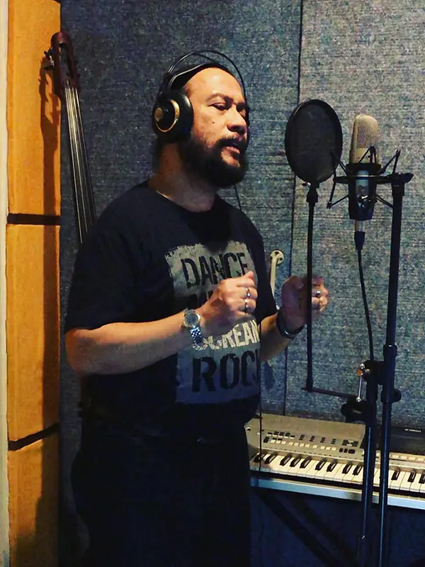 Band.Ia berpindah haluan sebagai vokalis dari band bernama Real Brothers.