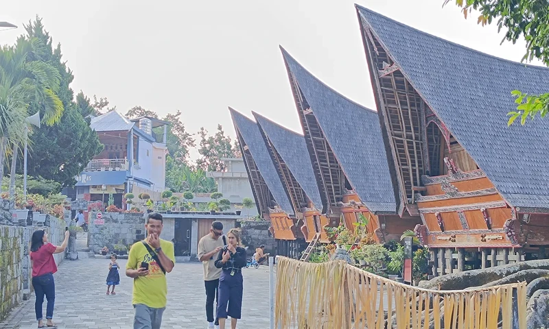 Wisatawan saat mengunjungi Huta Siallagan. (Foto: PARBOABOA/Ronald Sibuea)
