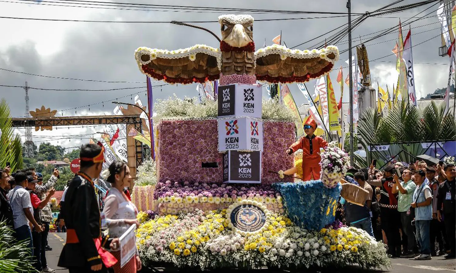 Perpaduan adat, budaya, dan anugerah tanah subur tercermin dalam parade 30 float flower dan karnaval busana bunga segar dengan desain kreatif, melewati jalur protokol hingga berakhir di Stadion Babe Palar.