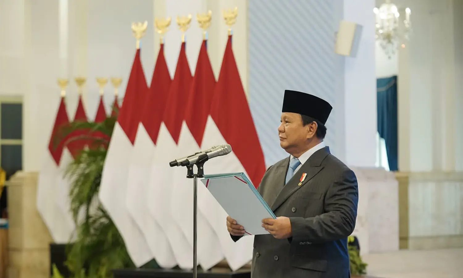Presiden Prabowo saat pelantikan Badan Industri Mineral dan Badan Otorita Pengelola Pantai Utara Jawa, Senin (25/8/2025) (Foto: IG/@presidenrepublikindonesia)