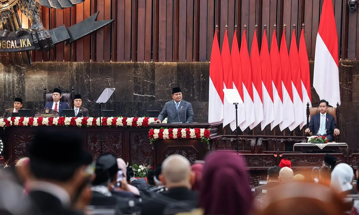 Pidato tersebut antara lain memuat target pertumbuhan ekonomi 2026 sebesar 5,4 persen, penurunan pengangguran, serta pelaksanaan program makan bergizi gratis untuk 20 juta penerima manfaat.