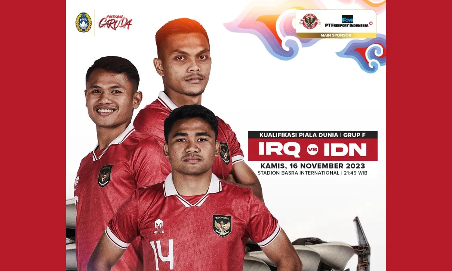Pada matchday pertama Grup F Kualifikasi Piala Dunia 2026 zona Asia, Timnas Indonesia akan berhadapan dengan Irak di Basra International Stadium, Kamis (16/11/2023). (Foto: Instagram/@timnas.indonesia)