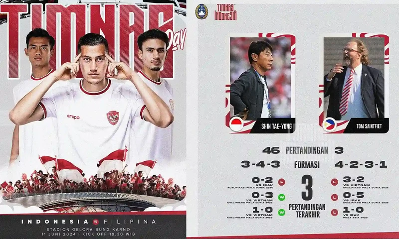 Timnas Indonesia akan menghadapi laga terakhir mereka di Grup F fase kedua Kualifikasi Piala Dunia 2026. Tim Garuda, di bawah asuhan Shin Tae-yong, akan menjamu Timnas Filipina di Stadion Utama Gelora Bung Karno, Jakarta, pada Selasa (11/6/2024) mulai puk