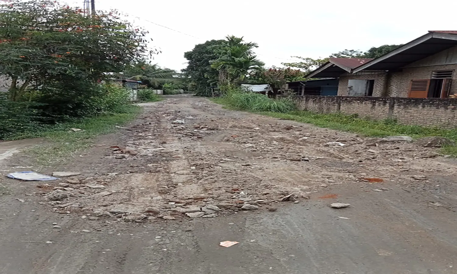 "Tidak pernah sama sekali diperbaiki jalan di tempat kami ini. Apalagi kalau sudah datang hujan, jalan ini tegenang air dan becek. Setiap saya mengantar anak saya pergi ke sekolah, pasti sering terkena percikan air,” kata , Nur Aini (55).