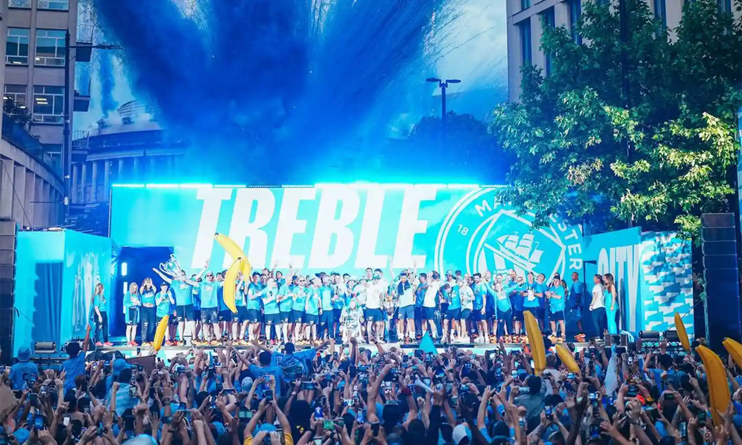 Keberhasilan ini menyamai prestasi rival sekota mereka, Manchester United. Pada musim 1998/1999, Setan Merah juga meraih treble bersama Sir Alex Ferguson.