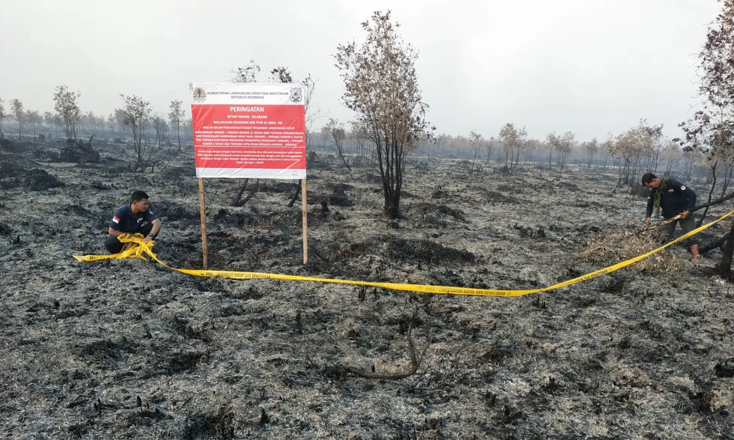 Keenam lokasi karhutla tersebut telah dipasangi garis PPLH dan papan larangan berkegiatan guna mencegah meluasnya dampak karhutla sesuai dengan kewenangan yang diberikan oleh Pasal 74 ayat (1) huruf j Undang-Undang Nomor 32 Tahun 2009 tentang Perlindungan dan Pengelolaan Lingkungan Hidup.