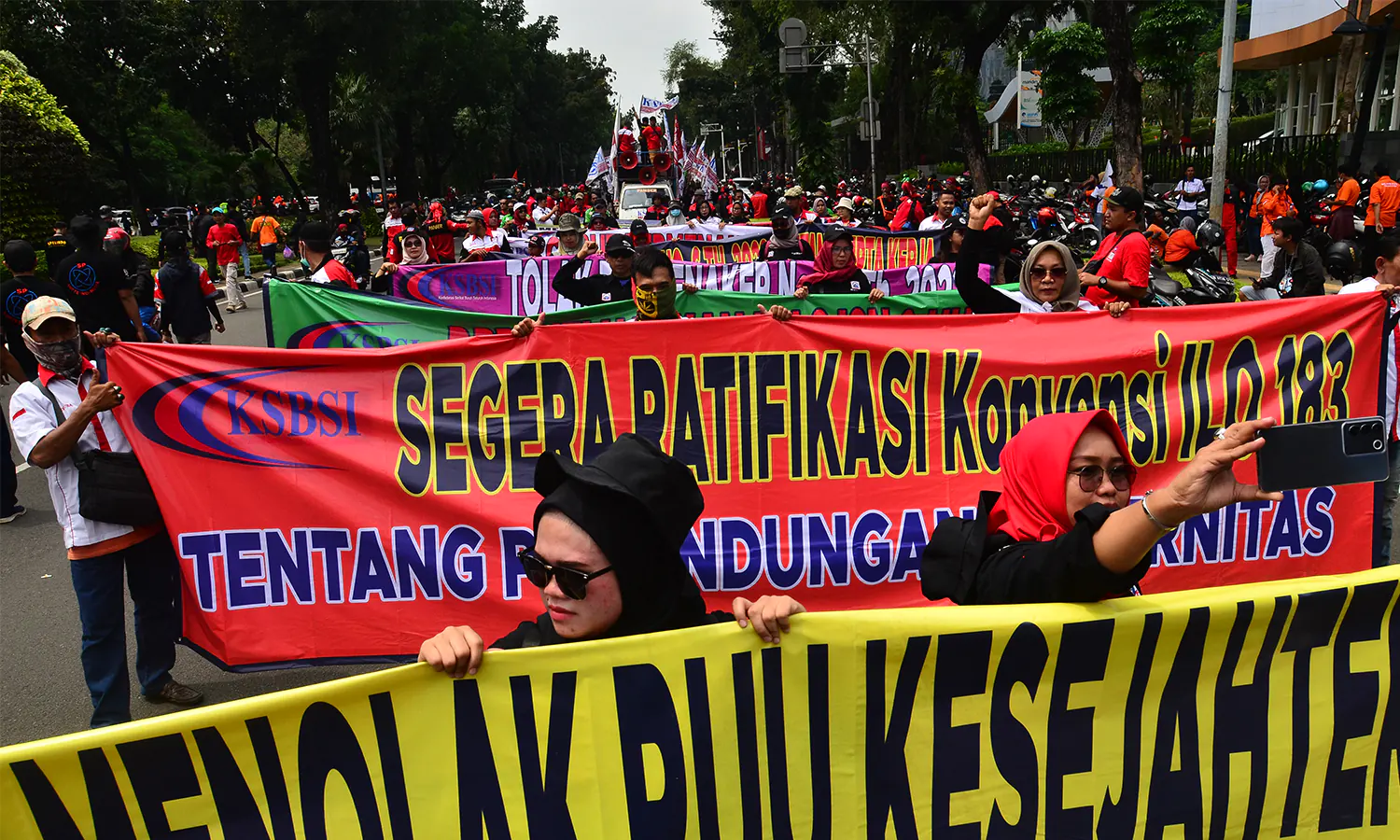 Belum juga itu dikabulkan, buruh harus dihadapkan dengan peraturan perundang-undangan yang tidak menguntungkan lagi yakni disahkannya UU Nomor 11 Tahun 2020 tentang Cipta Kerja atau yang dikenal Omnibus Law.