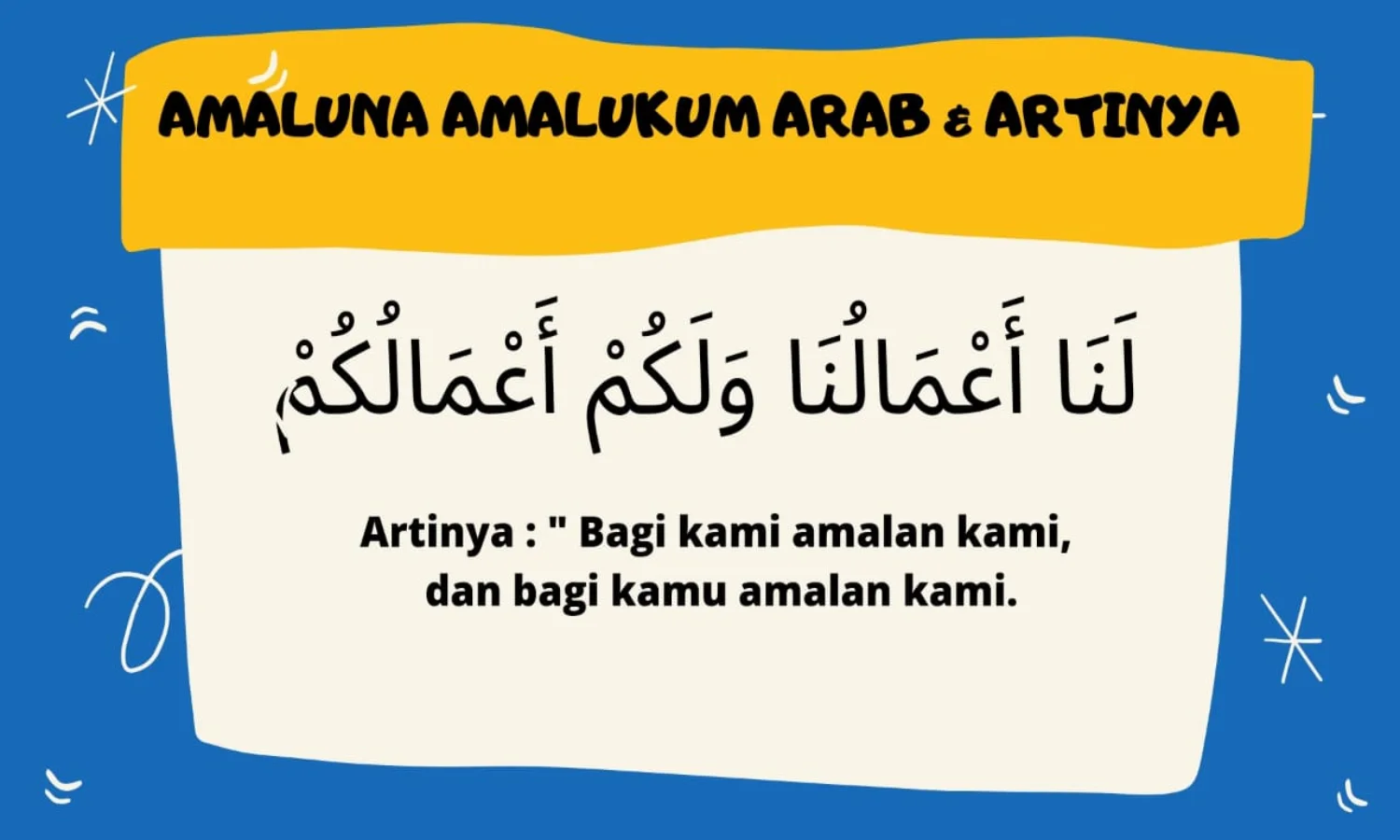 Amaluna amalukum artinya bahasa Arab : لَنَا أَعْمَالÙنَا ÙˆÙŽÙ„ÙŽÙƒÙمْ أَعْمَالÙÙƒÙمْ