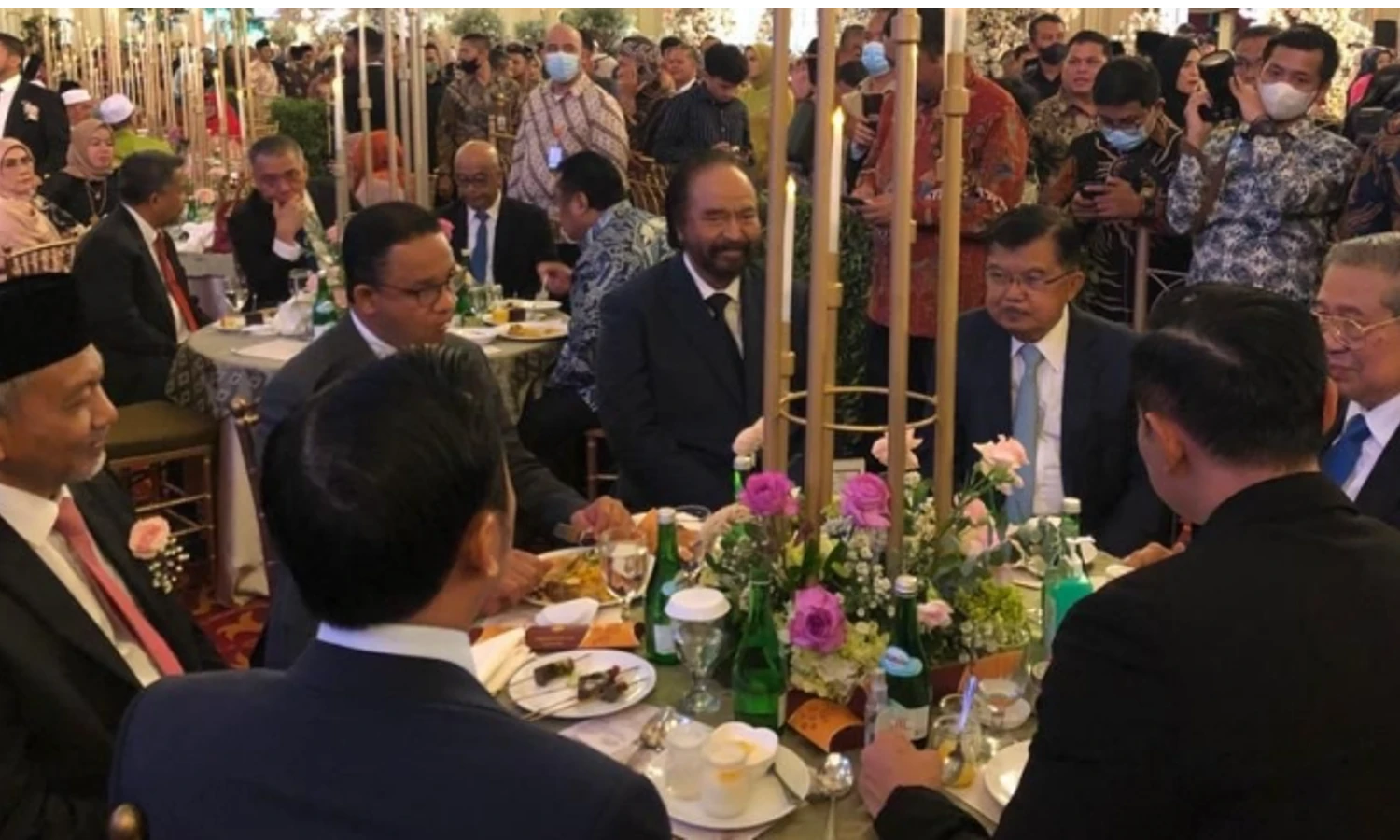 Selain 3 ketum parpol tersebut, Anies nampak semeja dengan Presiden ke-6 RI sekaligus Ketua Majelis Tinggi Demokrat, Susilo Bambang Yudhoyono (SBY) dan Wakil Presiden RI ke-10 dan ke-12 RI Jusuf Kalla (JK).