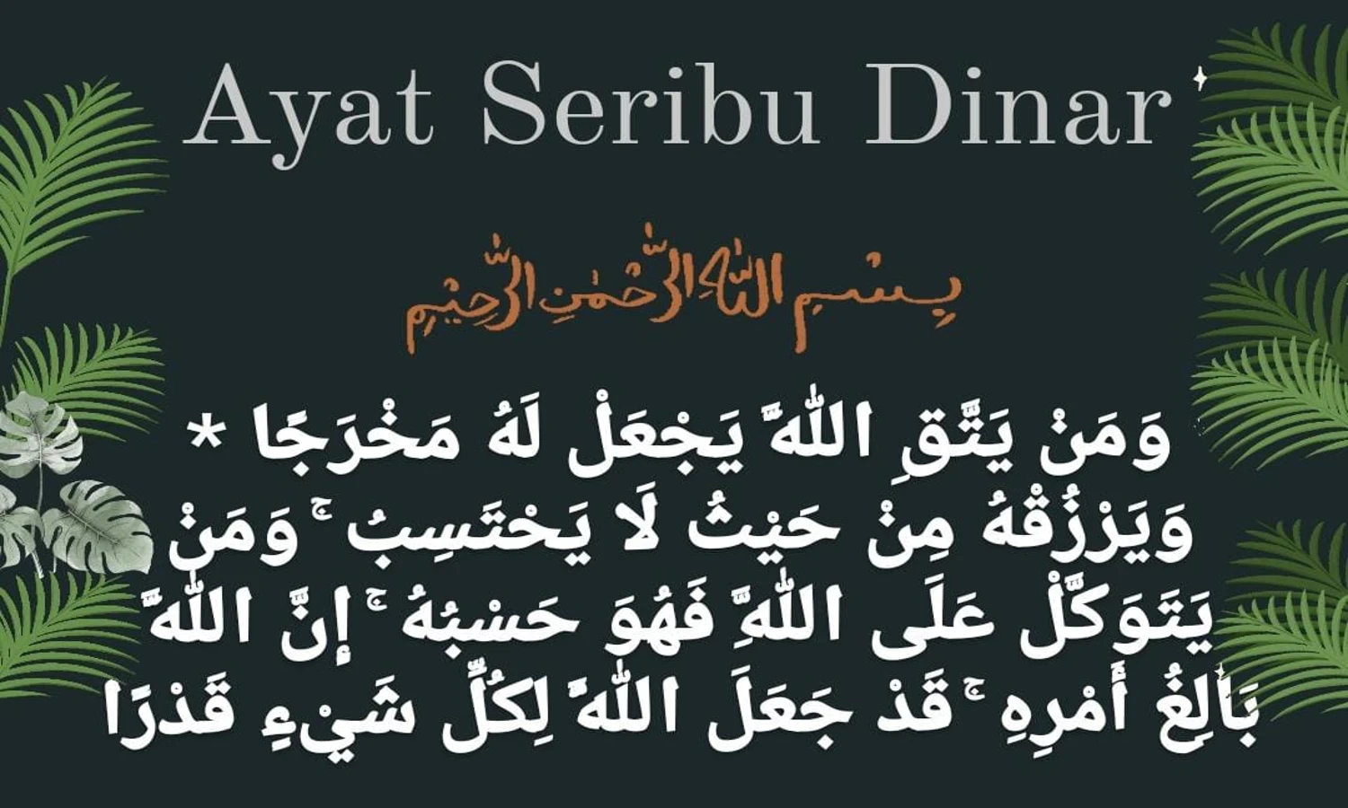 Penggalan ayat seribu dinar berasal dari salah satu surat AL Quran, yakni Surat At Talaq ayat 2-3.
