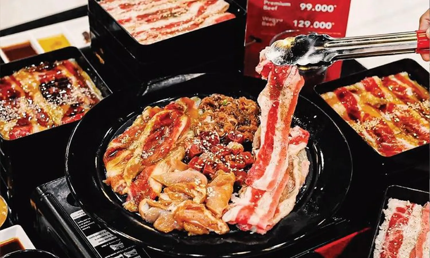 Di Gogogi Korean Grill, kamu bisa menikmati 200 gram premium US beef, 100 gram tenderloin beef, fresh lettuce, samjjang, dan kimchi dengan harga Rp128 ribu saja.