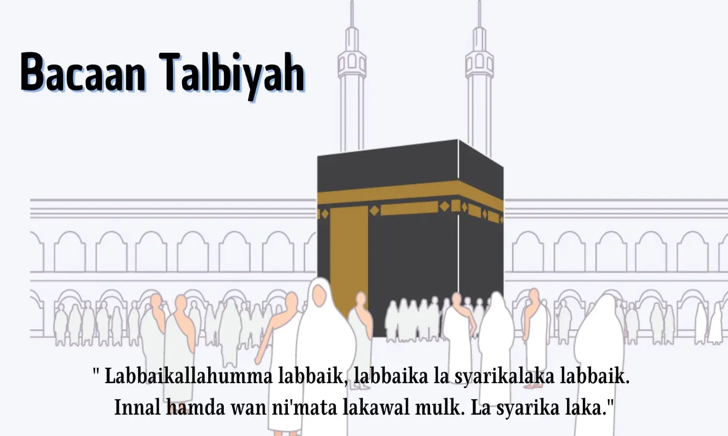 Artinya: "Aku datang memenuhi panggilan-Mu ya Allah, aku datang memenuhi panggilan-Mu, aku datang memenuhi panggilan-Mu, tiada sekutu bagi-Mu, aku datang memenuhi panggilan-Mu. Sesungguhnya segala puji, kemuliaan, dan segenap kekuasaan adalah milik-Mu. Tidak ada sekutu bagi-Mu."
