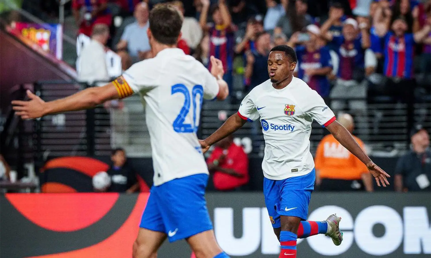 Umpan dari Alejandro Balde berhasil dikonversikan menjadi gol oleh Ansu Fati melalui tembakan kaki kanan.