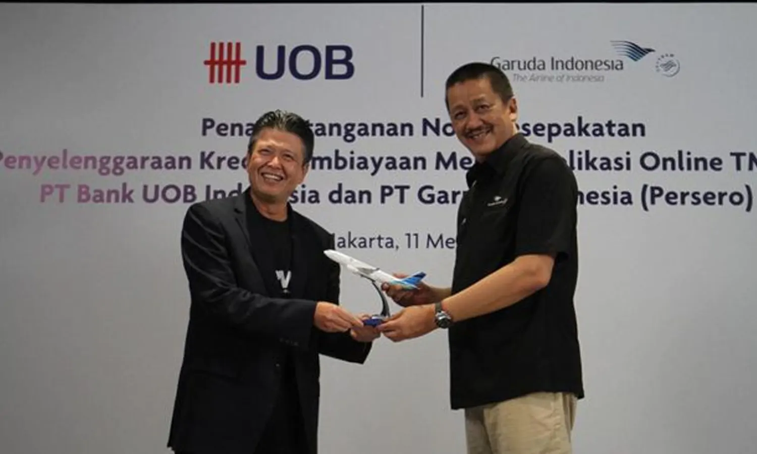 PARBOABOA, Jakarta - Maskapai penerbangan plat merah Garuda Indonesia bekerja sama dengan PT Bank UOB Indonesia, untuk mempermudah pelanggan dalam membeli tiket pesawat Garuda.