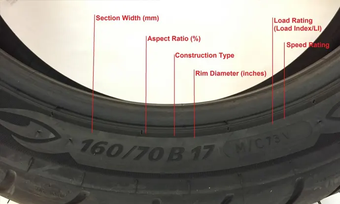 Angka pertama 160 menunjukkan ukuran lebar ban dalam satuan milimeter yang berarti 160 mm. Angka kedua merupakan ukuran profil atau ketebalan dinding ban, juga sering disebut sebagai aspek rasio ban. Angka yang tercantum menunjukkan persentase terhadap lebar ban. Angka 70 berarti, ketebalan ban adalah 70% dari lebar ban yang 160 mm, yaitu 112 mm.