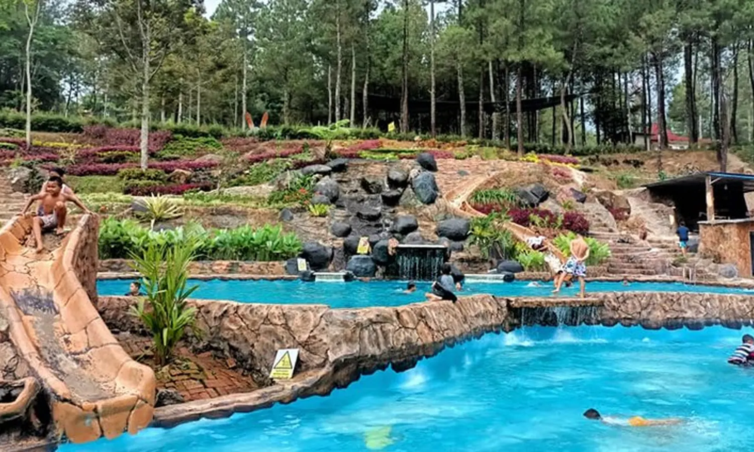 Tidak jauh dari hutan pinus juga terdapat area kolam renang yang memiliki air dari sumber mata air alami.
