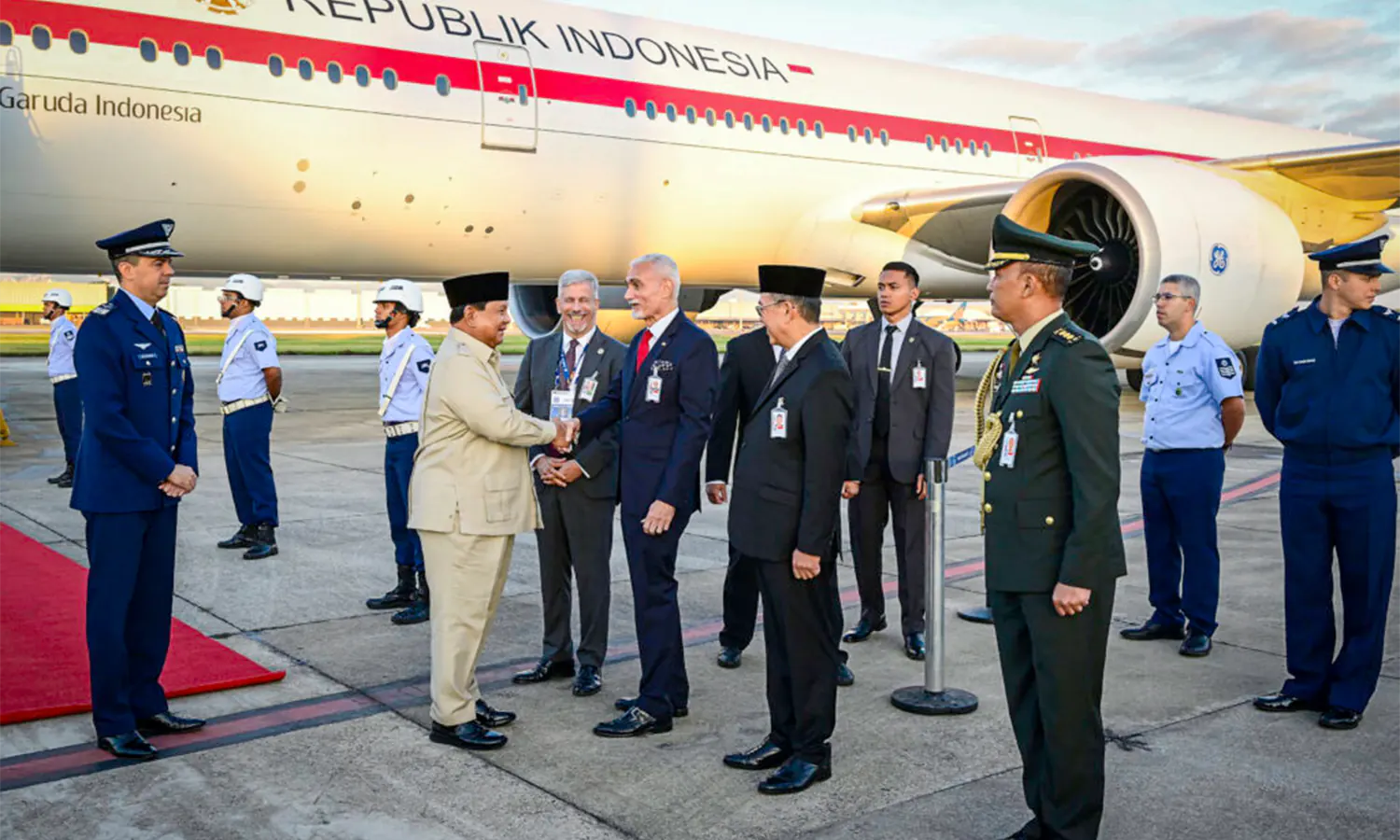 Presiden Republik Indonesia Prabowo Subianto disambut sejumlah petinggi negara Brazil saat tiba di Air Base Galeão, Rio de Janeiro pada Sabtu (5/7/2025) pagi. (Foto: dok. BPMI Setpres)