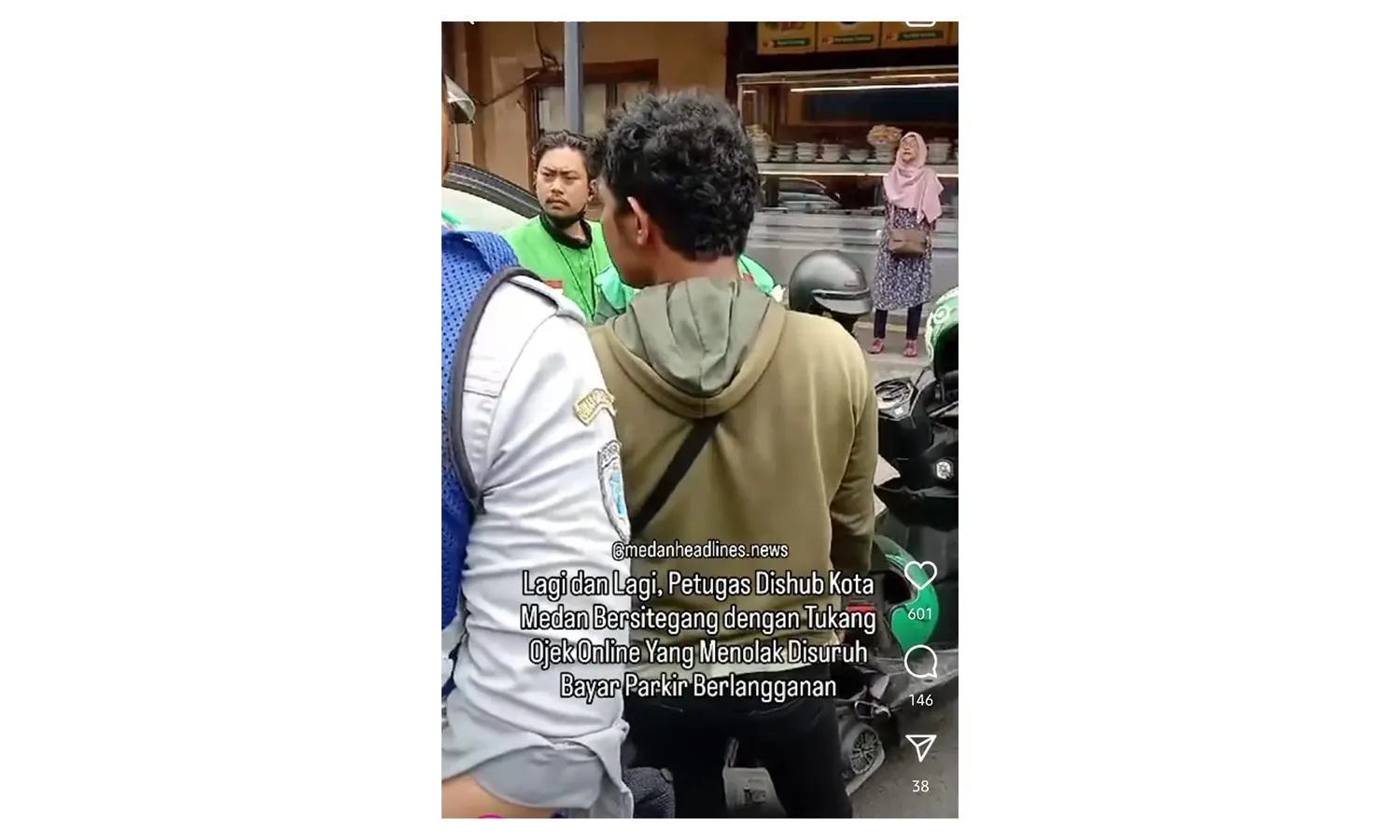 Seperti yang beredar di media sosial, seorang pengemudi ojek online yang bersitegang dengan Dinas Perhubungan Kota Medan yang menolak bayar parkir berlangganan.