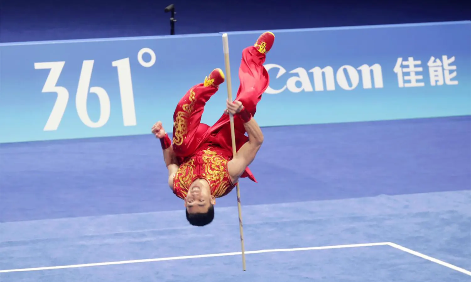 Harris sukses naik ke podium tertinggi usai meraih hasil dan penilaian terbaik di nomor Men’s Nanquan.
