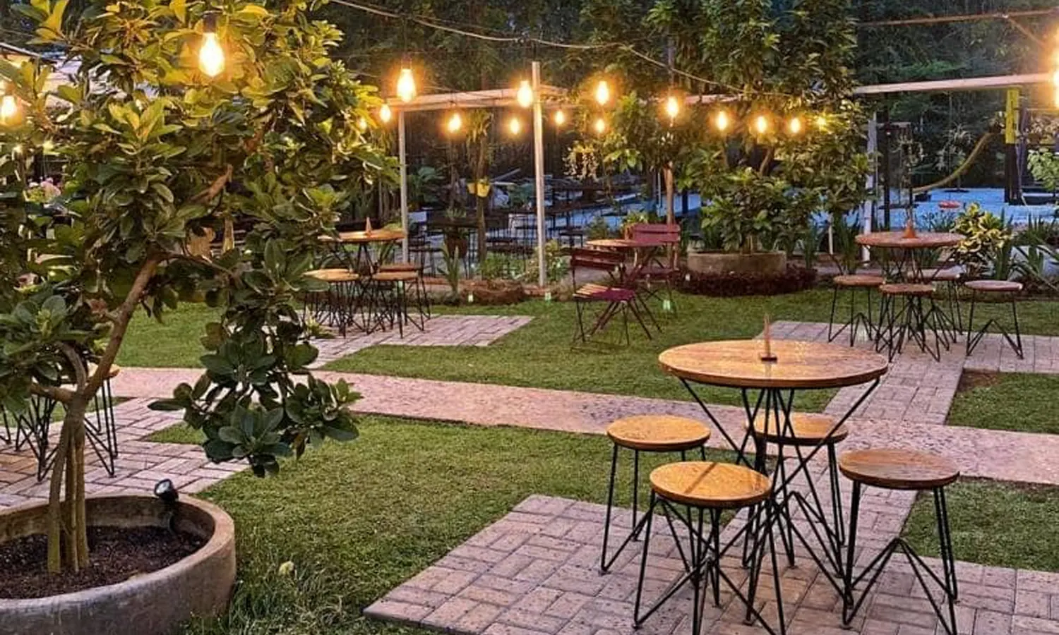 Ini merupakan salah satu cafe di Karawang minimalis yang terbagi menjadi dua area. Konsep outdoor-nya bisa dibilang sangat estetik banyak pepohonan yang rindang.