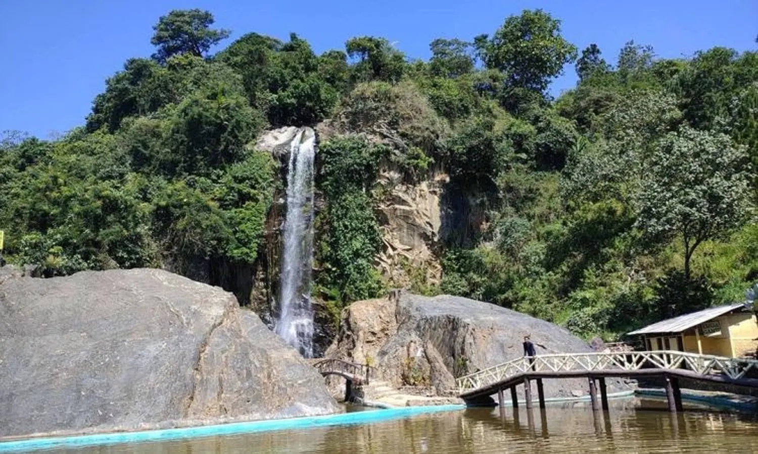 Lokasinya masih berada di kawasan Taman Nasional Halimun Salak yang asri. Tepat di bawah air terjun, terdapat kolam berwarna kebiruan yang cocok buat berenang dan berendam.