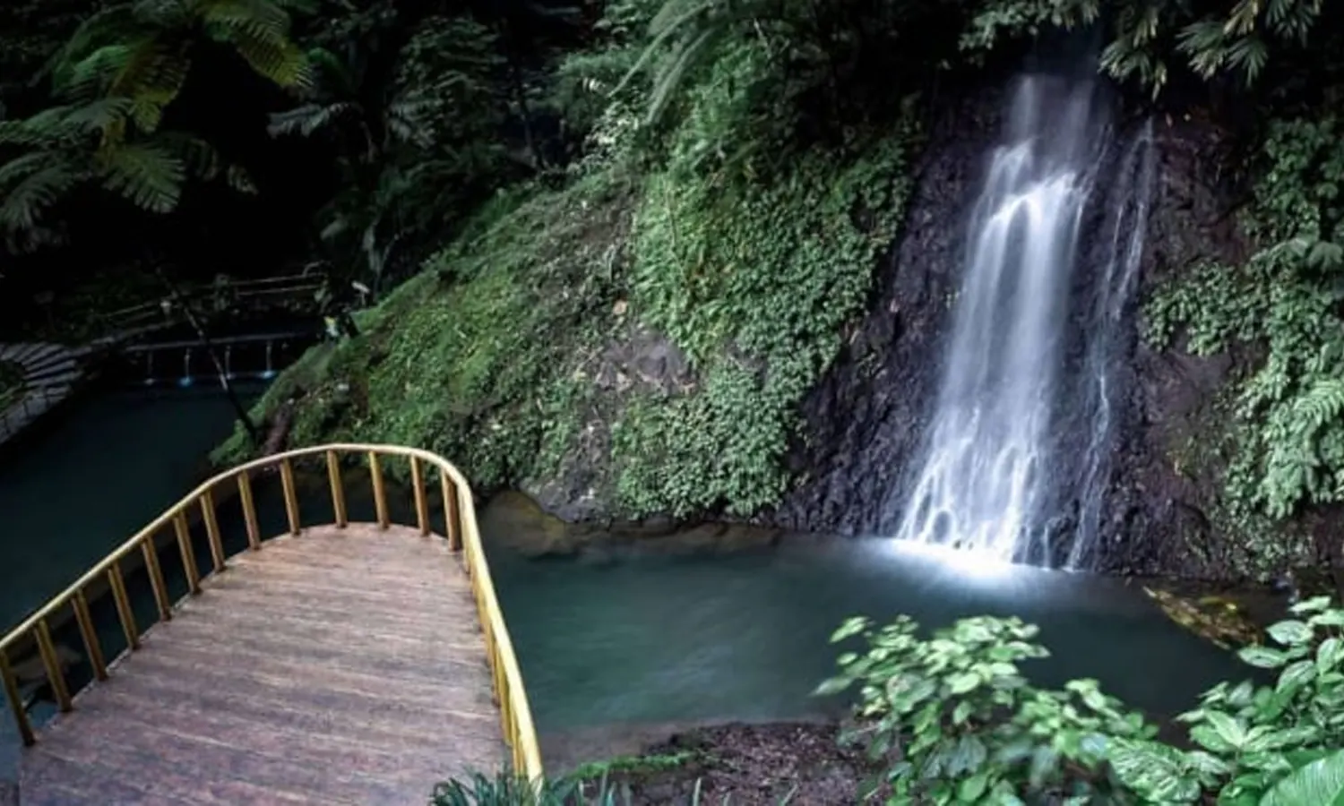Disini nantinya kamu akan melihat air terjun yang cukup tinggi dan memiliki dua tingkat. Ketika sampai, kamu pun bisa bermain air di kolam alami yang memiliki air yang dingin dan segar.