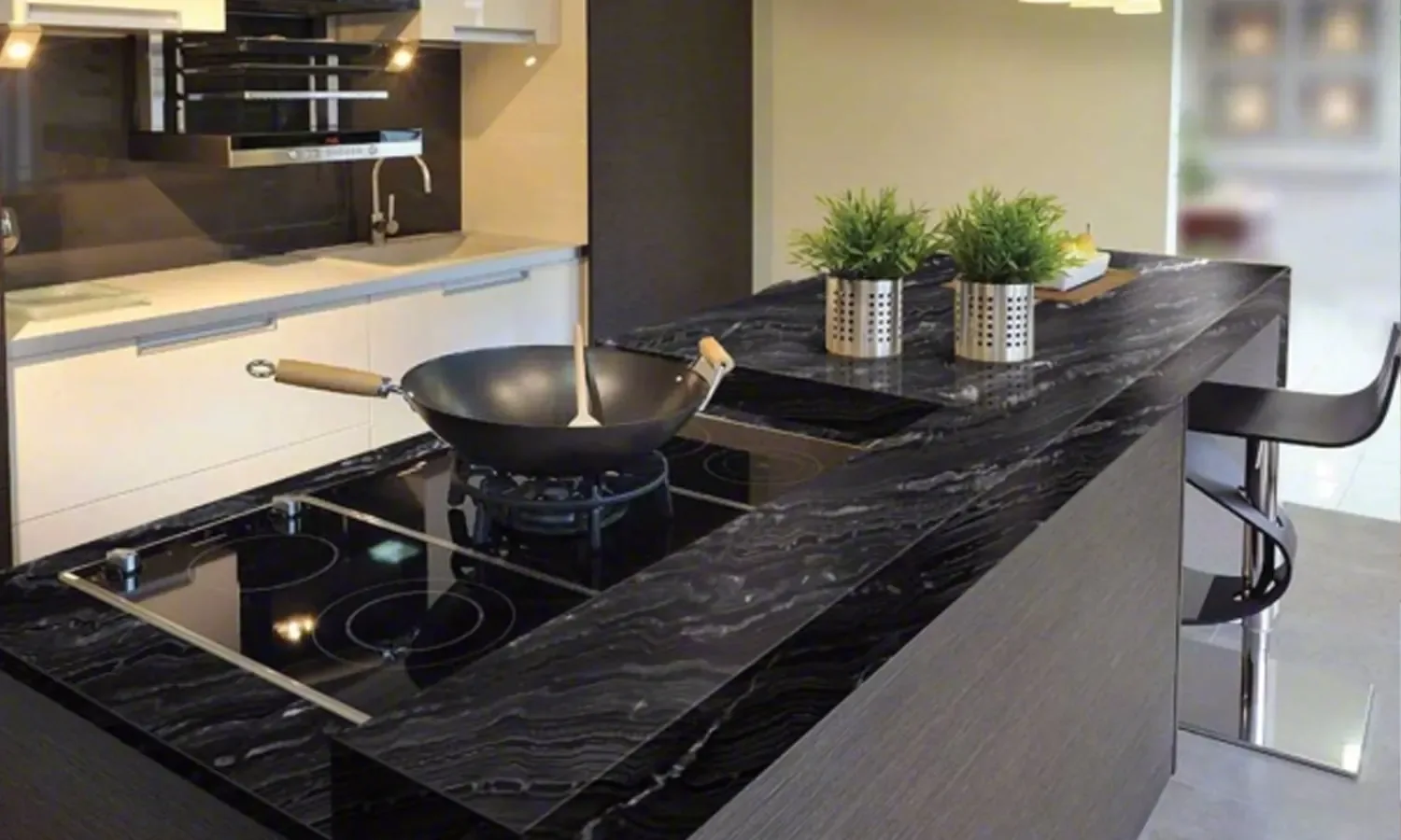 8. Granit Meja Dapur Hitam Mengkilap yang Mewah