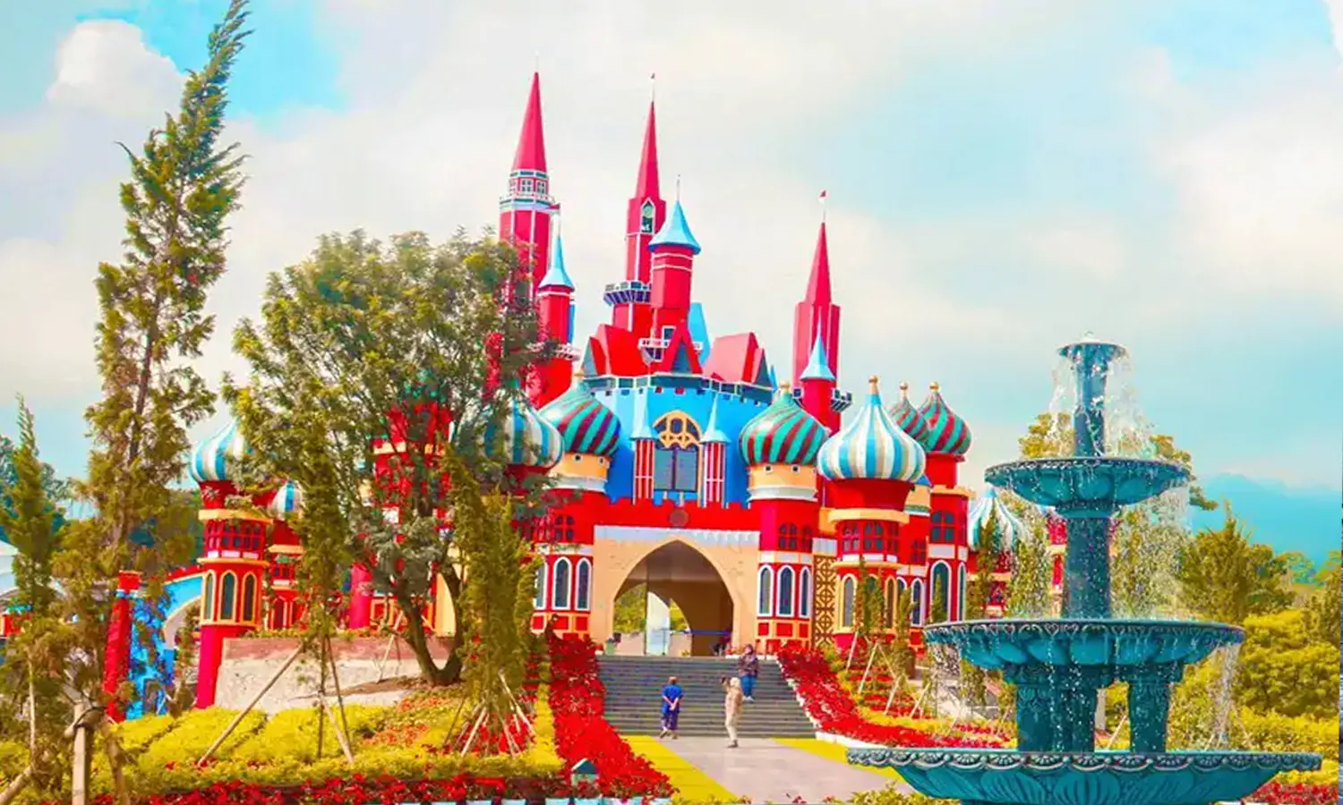 Salah satu andalan destinasi ini adalah bangunan kastilnya yang berdiri megah dengan warna-warni bak kastel di negeri dongeng.