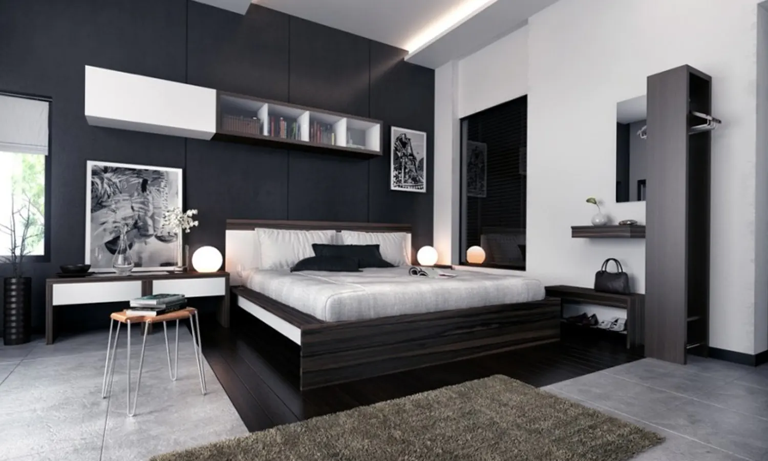 Tema pertama dari desain kamar monokrom ini sebenarnya sangat simpel dan banyak digunakan.