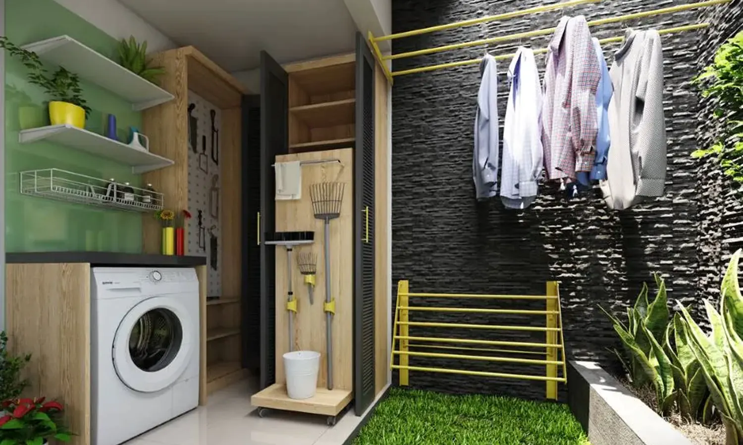 Hal ini direkomendasikan untukmu agar ruang cuci baju tetap nyaman untuk menjemur baju dan pakaian basah cepat kering.