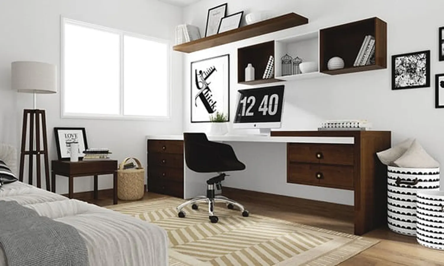 Memanfaatkan sudut ruangan bisa jadi salah satu cara dalam membuat desain ruang kerja minimalis tanpa menghabiskan banyak space.
