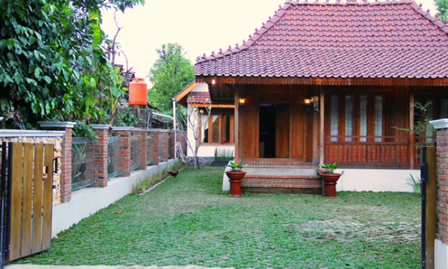 Jika dilihat dari pilar dan pintu rumah yang menggunakan material kayu, jelas menonjolkan nilai-nilai arsitektur tradisional.