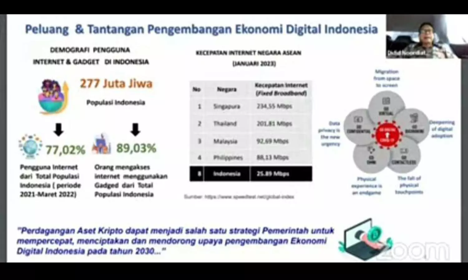 Didit mengatakan, Ini membuat perdagangan aset kripto menjadi salah satu strategi pemerintah untuk mempercepat dan mendorong upaya pengembangan ekonomi digital di Indonesia tahun 2030.