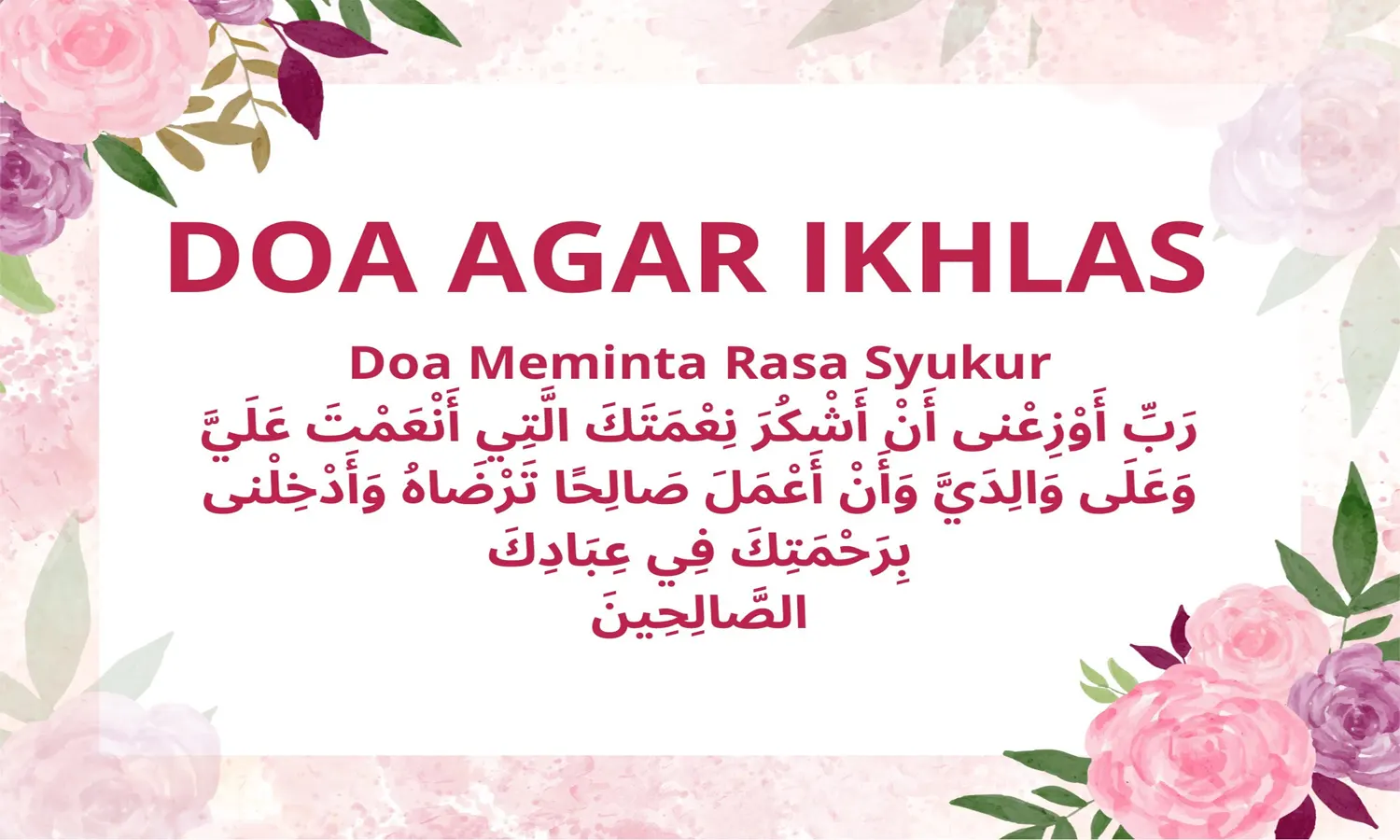 Karena itulah, Anda harus sekuat tenaga memiliki sifat sabar, syukur, dan ikhlas. Selain dengan memaksimalkan ikhtiar, Anda juga harus memanjatkan doa agar ikhlas dan sabar kepada Allah agar dianugerahi ikhlas.