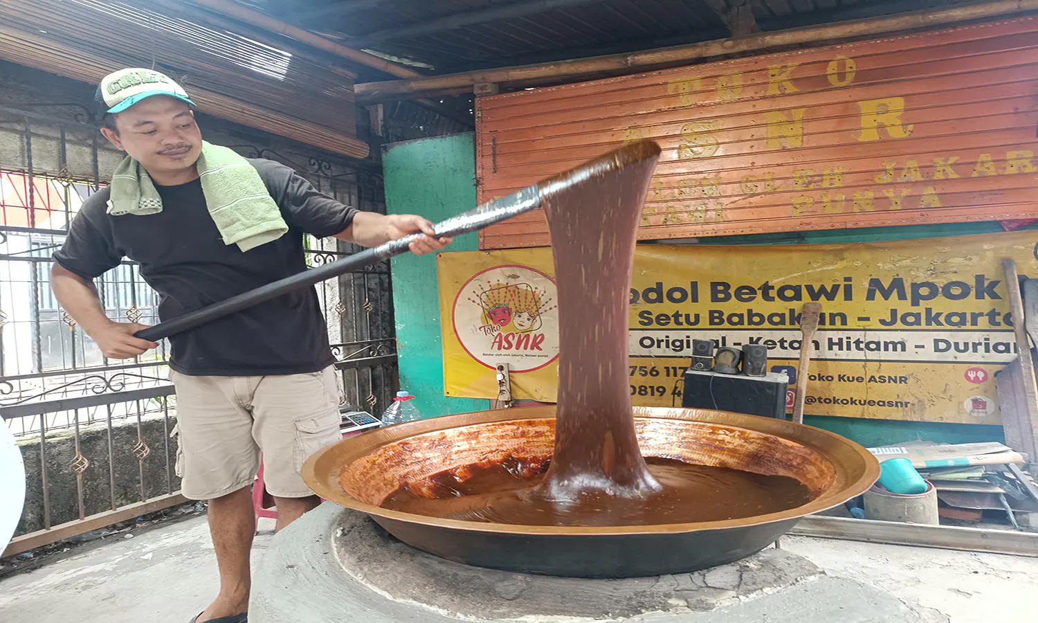 "Klek, klek, klek..." Suara gesekan sendok kayu dengan kuali tembaga tiba-tiba menarik perhatian kami, untuk mengarahkan langkah ke sebuah dapur sederhana yang dipenuhi aroma manis dodol Betawi.