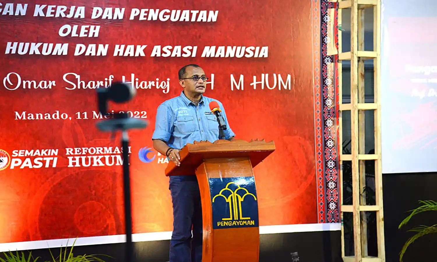 PARBOABOA, Jakarta-Kabar pengunduran diri Edward Omar Sharif Hiariej sebagai Wakil Menteri Hukum dan Hak Asasi Manusia (Wamenkumham), menyembul di publik, Rabu (6/12/2023).