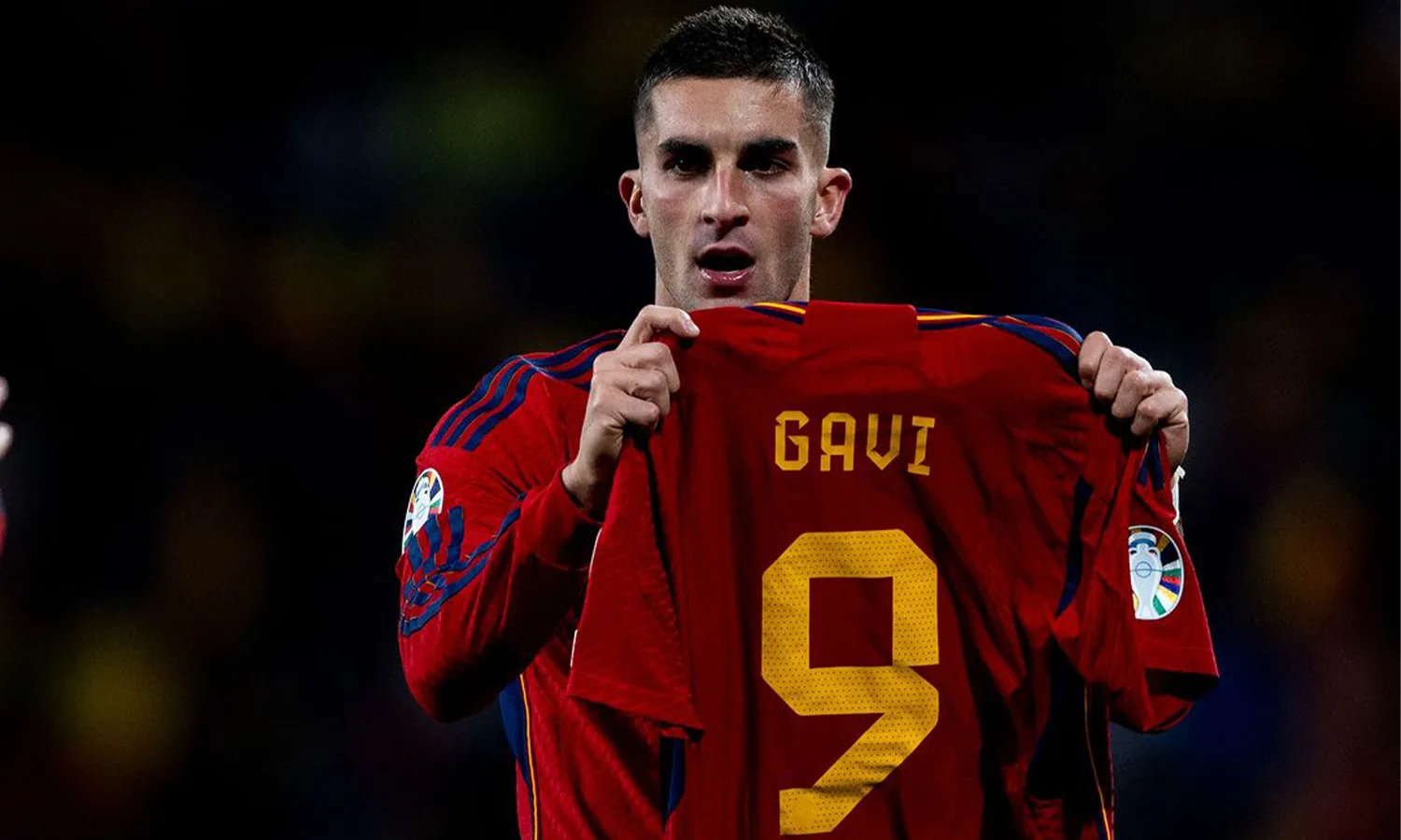 Ferran Torres, rekan setim Gavi di klub dan timnas, menunjukkan dukungannya dengan mendedikasikan golnya untuk sang gelandang, mengangkat jersey Gavi sebagai bentuk penghormatan di depan penonton.