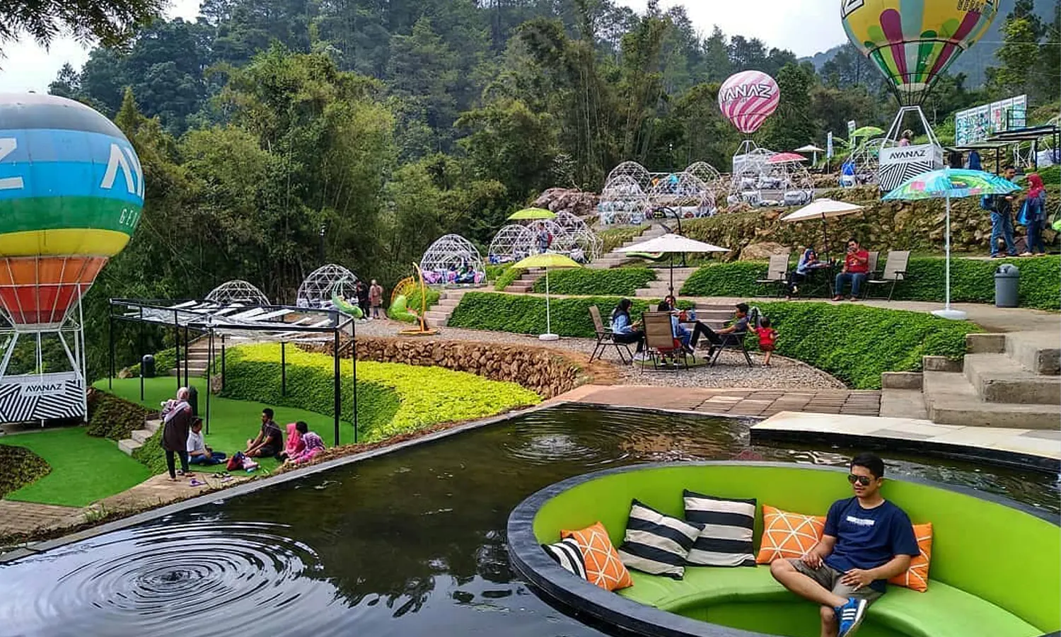 Selain replika balon udara, ada juga bingkai foto raksasa, ayunan di atas kolam, bubble tent, replika perahu, dan masih banyak lagi.