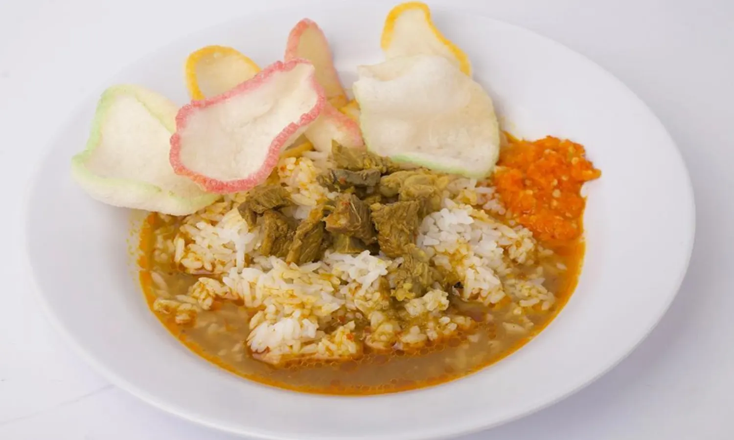 Daging sapi, ikan, kambing, jeroan, atau sayuran dicampur dalam kuah ini, terutama nikmat disajikan dengan nasi putih.