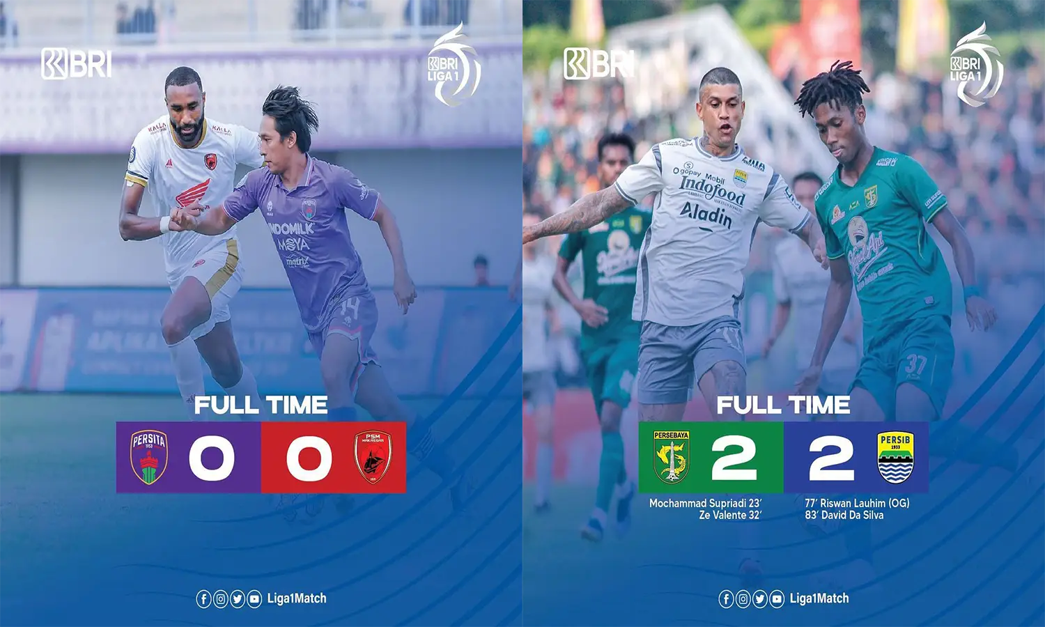 Meski bermain imbang, PSM Makassar masih memuncaki klasemen sementara BRI Liga 1 dengan raihan 66 poin, sedangkan Persib gagal memperpendek jarak dan masih berada di posisi kedua dengan raihan 53 poin.