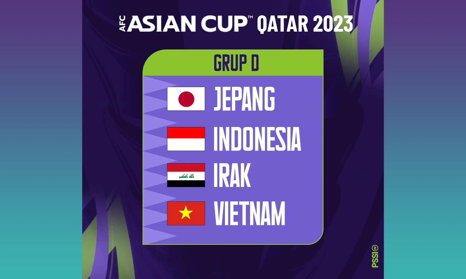 Hasil drawing menempatkan Timnas Indonesia berada di Grup D bersama Vietnam, Irak, dan Jepang.