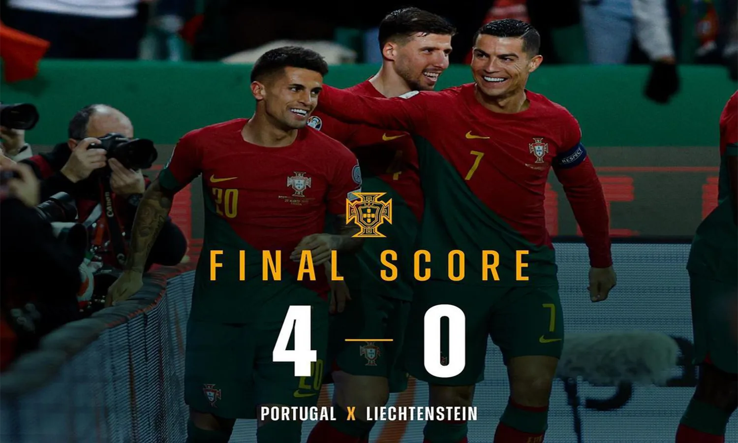 Portugal terus mendominasi permainan hingga akhir pertandingan, dengan hanya satu shot on target yang tercatat untuk Liechtenstein dan 10 shot on target untuk Portugal dari total 30 tembakan.