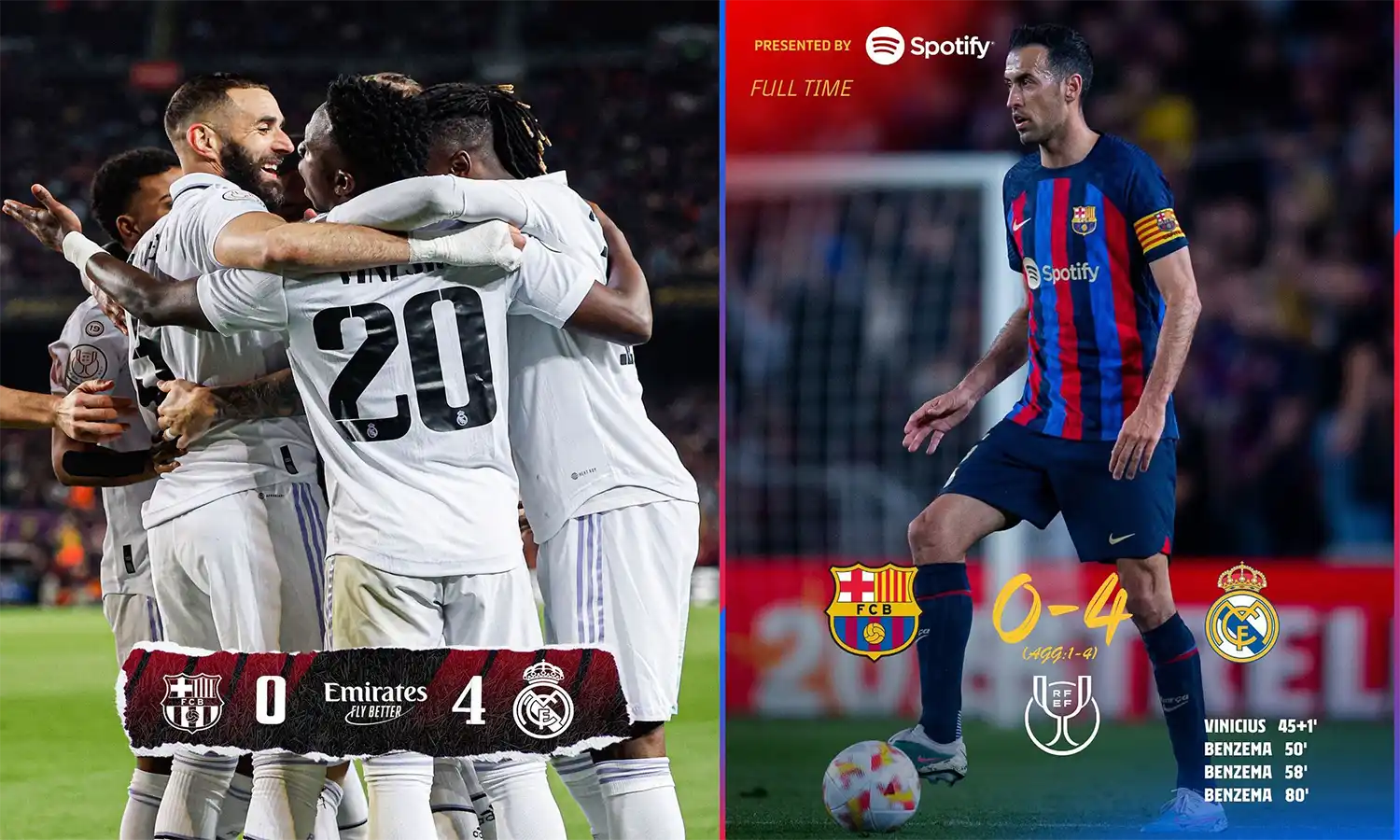 Pertandingan babak pertama berlangsung alot tanpa ada gol yang tercipta dari kedua tim. Namun, petaka bagi Barcelona datang pada babak kedua. Vinicius Jr. membuka keunggulan Real Madrid pada menit ke-46, sementara Karim Benzema mencetak hattrick pada menit ke-50, 58, dan 80.