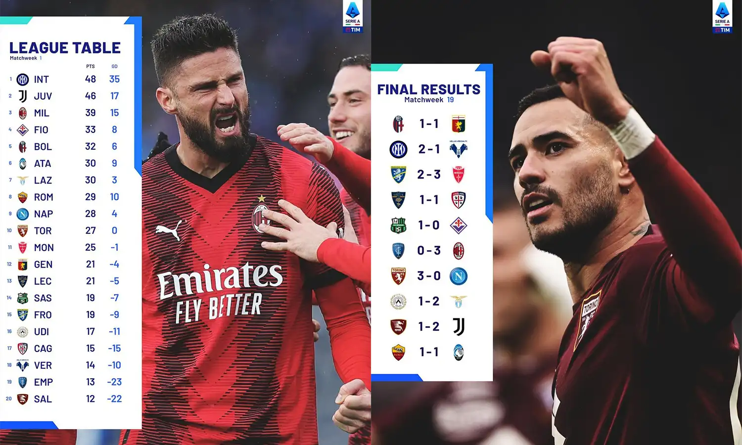 Di sisi lain, Napoli harus menelan kekalahan telak 0-3 dari tuan rumah Torino di Stadion Olimpico Grande Torino.