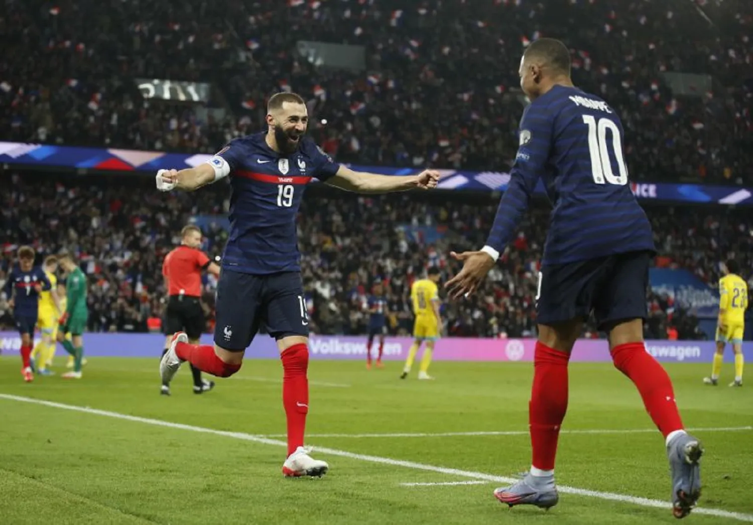 Setelah bermain imbang tanpa gol di babak pertama, Prancis sukses memastikan kemenangan berkat gol Karim Benzema dan Kylian Mbappe di babak kedua.