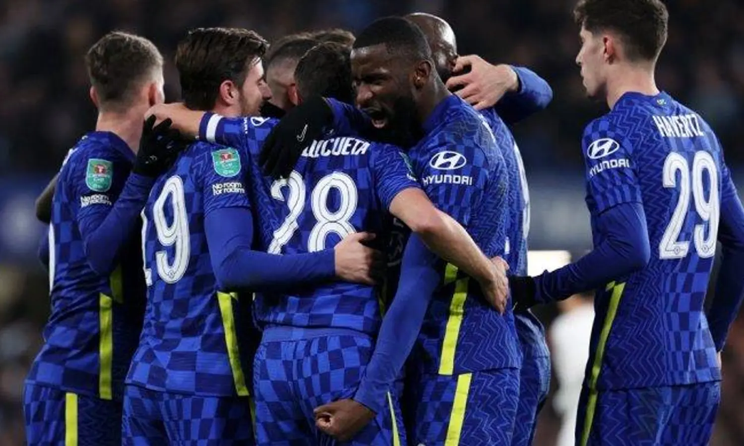 Kepa Arrizabalaga, Cesar Azpilicueta, Hakim Ziyech, Mason Mount, Jorginho, Mateo Kovacic, hingga Romelu Lukaku tampil sejak menit pertama.