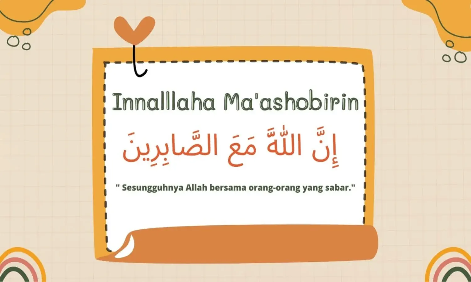 Innallaha ma'ashobirin terdapat dalam surat Al-Baqarah ayat 153, artinya sesungguhunya Allah bersama orang-orang yang sabar.