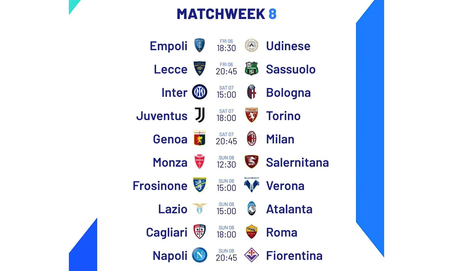 Duel antara Juventus dan Torino akan digelar di Allianz Stadium pada Sabtu (7/10/2023) malam WIB. Berikut jadwal lengkap pertandingan Liga Italia 2023/2024 untuk giornata ke-8 akhir pekan ini: