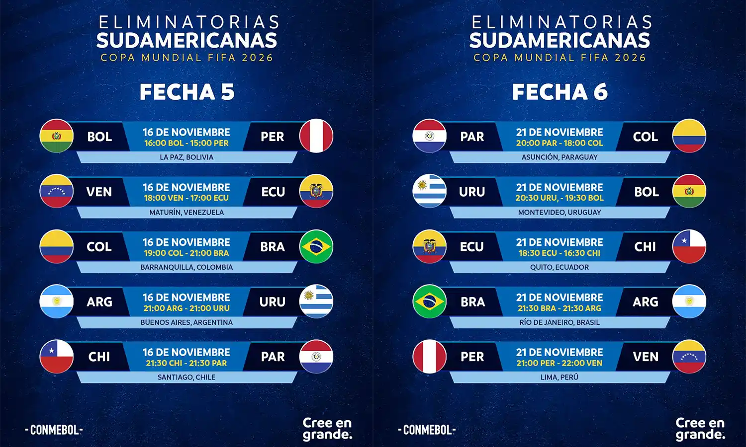 Dalam laga yang digelar di Buenos Aires pada matchday kelima, Argentina akan bertarung melawan Uruguay dalam pertandingan yang diharapkan akan mempertahankan tren positif mereka. Sementara itu, Brasil akan melawan Kolombia dengan tekad meraih poin penuh di laga tandang.