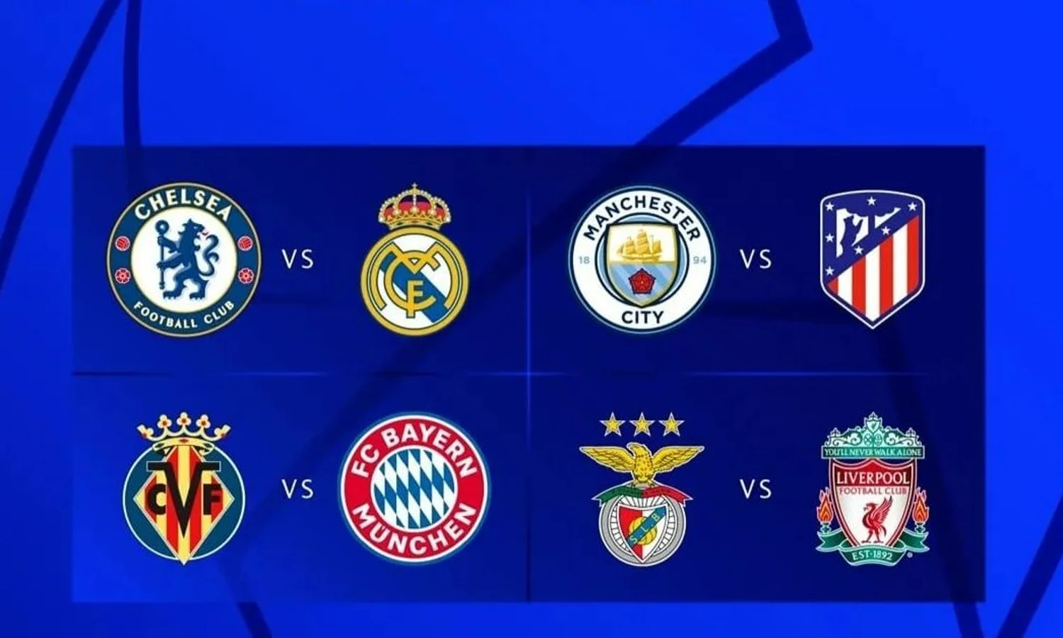 Siapa pun pemenang dari duel Real Madrid vs Chelsea, nantinya akan berjumpa antara Manchester City atau Atletico Madrid pada laga semifinal Liga Champions. Adapun laga lainnya, pemenang Bayern Munchen kontra Villarreal akan menantang Liverpool atau Benfica pada babak empat besar.
